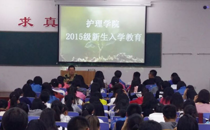 首先,刘媛媛老师通过总结新生入学相关事宜拉开了本次讲座的帷幕。接着,赵殿龙书记从三个方面给15级新生做了指导。他指出,第一、大学是全面发展的黄金时代,是提高综合素质的人生基地,同学们要转变在中学时代的观念,培养自主学习和自我调理的良好习惯,树立正确的世界观、人生观、价值观,为将来进入社会做充分准备;第二、对护理专业与护理就业前景进行了深刻地分析,使15级新生茅塞顿开,对未来充满向往;第三、告诫新生要遵纪律、守规则,严格要求自己,认真学习专业知识,使自己有一个绚丽的大学生生活,有一个美好的人生开端。平易近人的赵殿龙书记,孜孜不倦地教诲,给15级新生在迷茫的旅途中点亮了指路灯。最后,刘媛媛老师宣布“15级新生入学教育”第一讲圆满结束。