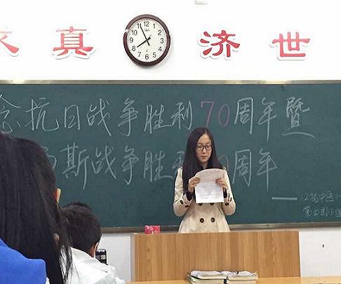 2015年9月28日晚,12级中医1班在医学楼307教室组织召开了名为“纪念抗日战争胜利70周年暨反法西斯战争胜利70周年”的主题团日活动。