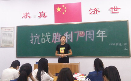 9月3日是中国人民抗日战争胜利70周年纪念日。为弘扬革命精神,增强学生的爱国主义情感,2015年9月22日晚7:30,14级护理1班在新校区护理楼302教室开展了“抗战胜利70周年”主题团日活动,本次活动由组织委员王慧祯主持。