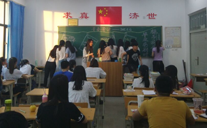 团日活动以师生恳谈会和毕业感言两项主题展开.首先团支书杨成彤作活动前发言,提出我们这次团日活动的主题-----栀子花开日,毕业临别时。活动伊始,辅导员燕鹏老师对我们做了实习前的指导,为同学们介绍了各个实习医院的概况,实习的流程,以及实习中可能遇到的问题。除此以外他还对同学们进行了心理疏导,告诉大家可能在实习期间会遇到各种各样的问题和困难,应该勇敢的去面对,遇到问题解决问题,在困难中锻炼自己,积累经验,并衷心希望我们在未来的日子继续努力实现自己的理想。接着,同学们依次进行发言,体味自己的大学生活,回顾在这三年自己在更方面的成长。整个活动过程中同学们积极热情,一起回忆着过去的各种趣事、团结在一起解决的困难、通过集体的努力取得的成绩。整个恳谈会过程中气氛热烈。活动结束后,同学们集体合照,并在青春寄语墙上留下了自己的感言。