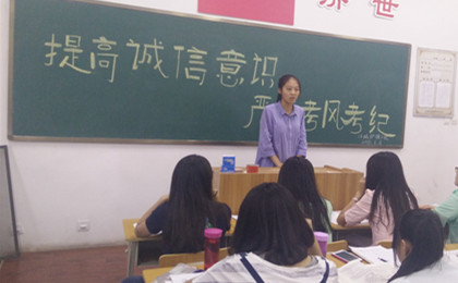 活动伊始,主持人王慧祯向大家简要介绍了此次活动的主题及目的,她鼓励同学们要增强自我教育、自我管理和自我约束意识,提高遵守校纪校规的自觉性,同时要端正学习态度,积极应对考试。接着,各宿舍代表分别上台发表了自己的观点和看法。禹文辉同学以历年考试作弊造成的严重后果为例,告诫同学们要努力复习、积极备考。团支书李若暄则认为考试正是培养同学们诚信品格的重要途径,需要大家认真慎重对待。随后,宣委吕盼进行补充,她说要想做到诚信考试,考前认真复习是必不可少的。考试时,应做到不夹带书本或纸张,不与别人交头接耳,窃窃私语,如此从小处开始,严正考风;考完后,更应该理性接受自己的成绩,不因考好而得意,也不因没考好而沮丧。她的发言引起了同学们的共鸣,赢得了大家的热烈掌声。最后,班长张成思就本次活动进行总结。