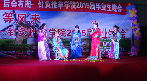 本次晚会,不仅让毕业生再次感受到了针推学院这个大家庭的温暖,更深化了学生的母校情、师生情和同学情,而且也表达了学院对2015届全体毕业生的美好祝愿。让我们忘却泪水,一起怀揣梦想,为美好而灿烂的明天共同努力拼搏吧!