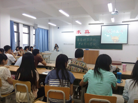 为了使同学们更好地理解诚信的内涵,更深刻意识诚信在实际生活中的重要性, 2015年6月15日晚7时30分,人文学院13级应用心理学班全体同学在知行楼309教室成功开展了以“提高诚信意识,严正考风考纪”为主题的团日活动。活动由团支书樊晓蒙主持。