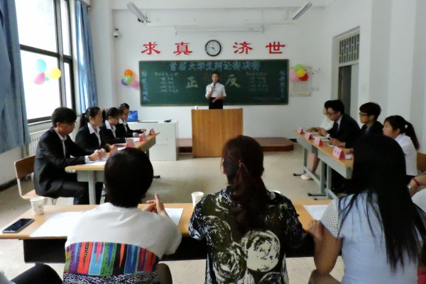 本着提高思辨能力,锻炼表达能力,培养团队协作精神,加强学校的学术氛围的原则,由中西医结合临床学院秘书处、宣传部联合举办的首届大学生辩论赛决赛于6月11日下午在仁济书院甲座103教室进行。本次比赛特邀中药学院党总支副书记庞维荣,基础学院张俐敏博士,中西医结合临床学院党总支副书记赵瑞宝,10级王小梅、陈春羽同学担任评委。