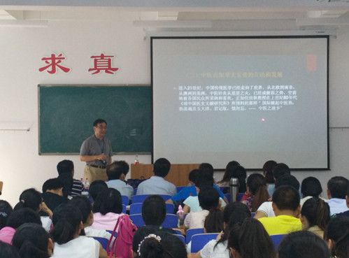 讲座伊始,程昭博士从协会的基本状况着手,讲述了协会从94年成立至今积极承担社会责任、努力创造的辉煌业绩的光辉形象。紧接着,他对全加中医药针灸协会进行了简单的介绍,并将其与辽宁中医药大学合作的人才培养计划的成果以数据的形式展现在师生面前,尤其突出了其注重专科、硕士、博士培养和对某一专题进行研究的特色教学方式;同时也对该协会的招生简章进行了具体的阐释,为学生今后的发展方向开辟了一条光辉大道。随后,程博士还着重介绍了中医在加拿大的立法和发展,对当地政府部门召开“中医诊所卫生整顿”大会的主要精神做了简单讲解,还强调了在国内外不同针具的具体操作方式、对不同种族针刺的注意事项等内容,极大的开阔了同学们的眼界。此外,程博士还从国家、社会等方面对中医诊所的发展前景做了详细介绍。在接近尾声的互动环节中,程博士对同学们提出的问题进行了耐心细致的解答,一次又一次地解决了同学们心中的疑惑,赢得了现场师生的阵阵掌声。最后,燕院长对本次讲座进行总结,并对同学们提出殷切期望,希望大家能够成为未来的中医栋梁,为祖国针灸事业的发展添砖加瓦。