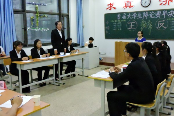 本次半决赛分为上下两场,两场比赛分别针对劳力者与劳心者哪个贡献大与宽松管理对大学生的利弊展开精彩的辩论。第一环节为开篇立论,由双方一辩各自引经据典来阐述各自的观点;第二环节是驳立论,由双方二辩分别指出对方在立论阶段中出现的问题并进行质疑,现场火药味十足。而在质辩阶段中,双方更是争锋相对、步步紧逼,现场气氛迅速升温,达到白热化阶段。在随后的自由辩论阶段,双方辩手充分发挥自己的聪明才智来质疑对方观点,双方争锋相对、实力相当;双方唇枪舌剑、你来我往,现场气氛不断升温,高潮迭起。在最后的总结陈词阶段,双方四辩清晰的思路,巧妙的陈词给同学们留下深刻的印象,赢来场下阵阵掌声。