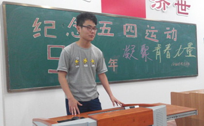 活动开始,团支书朱沂超致辞:缅怀五四先驱们的光辉业绩,展望文明和谐的校园生活,我们新时代的大学生责无旁贷。我们要继承和发扬五四精神,激励广大学子为推动科学发展、建设美好校园献智慧和力量。接着,影片《建党伟业》在同学们的阵阵欢呼声中播放。该片主要讲述了从辛亥革命到中国共产党成立这十年间发生的故事。这是一段大家熟知的历史,导演将这段历史分为一个个或深情或惊悚的小故事,再用旁白与黑白纪录片的方式讲述历史,从而将一幅波澜壮阔的历史画面展现在观众眼前。同学们观看影片时时不时被其中共产党人为了革命奋不顾身的场面所震撼,亦憎恨为了自身利益而卖家卖国的人。波澜壮阔的历史,纷繁复杂的人物,血腥风雨的国际关系,一触即发的激情岁月,这些因素都保证了《建党伟业》的成功,也是一次彻彻底底的精神洗礼。