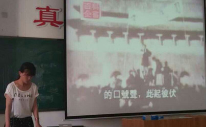 活动伊始,一曲《五四纪念爱国歌》引出本次团日活动的主题。伴随着同学们高昂的热情以及热烈的掌声,此次团日活动正式拉开帷幕。首先,主持人放映了精心制作的相关PPT,一幅幅振奋人心的背景画面,一行行流露真情的五四宣言,渲染了浓浓的爱国氛围。紧接着,PPT上呈现了一张关于“五四历史填空”的画面,同学们争相抢答,准确无误的完成了小测试。随后,主持人带领同学们观看了《五四运动,中华历史》的小视频,并提问“当代青年应该怎样纪念‘五四运动’,从而实现‘中国梦’?”。班长孙尚荣同学积极发言,她说:“我的近期‘中国梦’是完成好自己的演讲比赛,一生的‘中国梦’是做一个有用的人。她的回答赢得了同学们的肯定和辅导员的好评。最后,辅导员秦亚莉老师以习近平总书记的一句话“要志存高远,增长知识,锻炼意志,让青春在时代中焕发出绚丽的光彩” 对此次活动做出总结。
