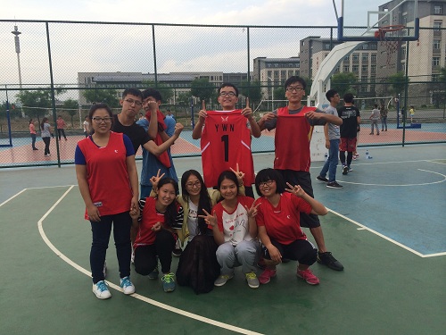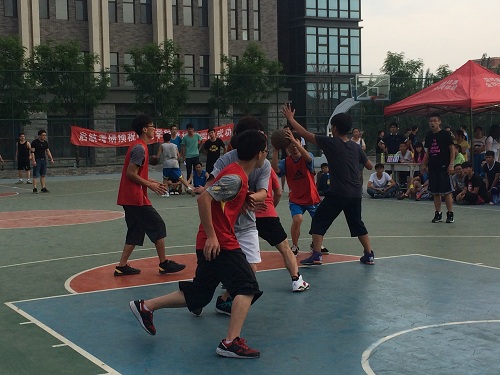 2015年5月29日星期五,在篮球场我班与14级市场营销一班进行三人制篮球对抗赛,这是我班闯入四强后的关键一站,此次比赛将决定哪支队伍能够最终争夺冠军殊荣。我班参赛队员仍然是田文韬、王林林、裴鎏华、梁达、杨文娜、郭晶蕾、李香艳、李旻倩,当天下午的拉拉队阵容十分强大,不仅本班同学,还有临班、高年级学长学姐,以及外系的同学,拉拉队的阵容足以见得本场比赛之激烈性和受关注度。