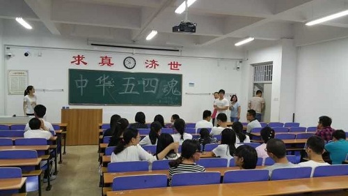 第二部分由活动承办团小组成员讲诵关于五四精神的诗歌《五四铭诗》,以及五四运动时相关的励志感人的故事。大家回顾历史,感怀五四,热血澎湃,激情燃烧。