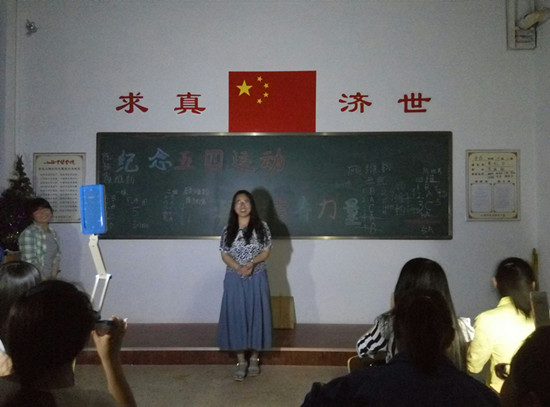活动以知识竞答的方式进行,主持人将全班同学分成四个小组,进行关于五四运动知识的抢答。竞答过程中,同学们斗智斗勇,表现出了惊人的智慧与战斗力。一番激烈的角逐下,活动走进尾声,评出了此次竞答的优秀小组,小组代表上台领取了奖品并拍照留念。
