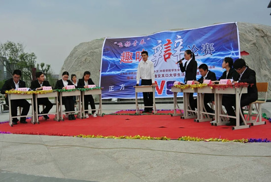 为了提升大学生逻辑思维能力,增强其现场应变能力,突破自我胆小怯懦的性格弱点。中药学院学生会于5月25日下午6时30分在大医精诚广场举办了“飞扬青春——趣味辩论赛”决赛。活动特邀医药管理学院副院长王金虹,成教学院副院长牛国英,中药学院党支部副书记庞维荣,学工办负责人李刚担任嘉宾评委。中药学院主持团成员李继超担任活动执行主席,并主持此次活动。