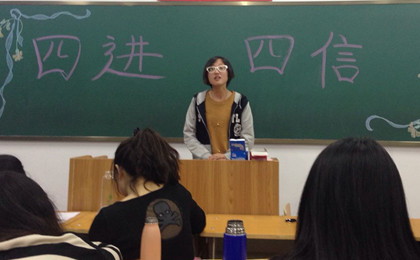 为了使同学进一步了解“四进四信”的深刻内涵,深入学习贯彻习近平总书记的讲话精神, 2015年4月23日晚7时30分,13级护理2班在护理大楼407教室举办“四进四信”主题团日活动。辅导员鹿云老师应邀出席了本次活动。全体同学参加。本次活动由淮晨曦同学主持。