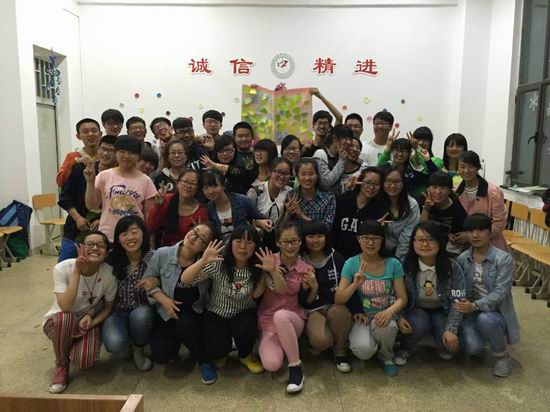 王梅同学用柔美的诗朗诵带领大家进入下个环节,团小组派代表讲述自己的故事,他们的故事或美满、或苦涩,但大家的心里都充斥着温暖。紧接着进行了第二个游戏“衣架穿衣”,惩罚环节中的受罚者要给朋友打电话,开免提说“突然好想你”,紧接着由张亚丽同学演唱《突然好想你》。随着音乐的响起,大家此刻的心情十分复杂,都不由自主地跟着唱了起来。