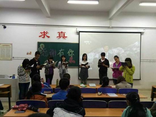 活动一开始,心理委员邓巧玉通过播放《感动中国》相关视频将此次活动的主题完美呈现。接下来,同学们从诗朗诵、歌唱《父亲》、手语表演《感恩的心》等多个角度表达了他们对“感恩”这个词语的理解。