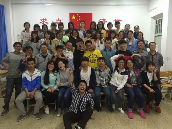 月朗星稀,班会进入“团队作战”环节。全班同学被分为四队,两两挑战,完成游戏接力后进入改版“老鹰抓小鸡”环节。现场气氛活跃,各团队认真思考,安排战略,积极作战。主持人对此次班会进行总结,“人生也是一种接力,需要积极,乐观,友爱,团结他人的态度。如此,才可以直面挑战,迎接未来;美丽的心灵需要拥有,拥抱快乐的人生。”班会在总结中缓缓落幕。在班级成员为合影留念中此次班会正式结束。