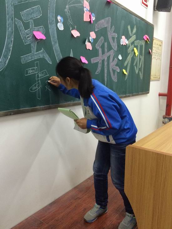 刘婷担任第一位主讲人,她所讲的主题是《谁的青春不迷茫》。她首先在黑板上画了一个写着where、what、who的路边和一个小人,小人在路上迷茫找不到路可走。她说,我们的青春都一样,一样迷茫。青春就要不怕动荡,不怕转机,不怕突然,不怕变化。她教同学们尽力把悲观的事情用乐观的态度去表达,当一件事做到一半还看不到希望时,就要推自己一把,在一切未成定局之前不要停止脚步。“勇于追求自己想要的,就算失败又如何,总好过主动放弃。”她精彩的演讲博得了同学们的阵阵掌声。
