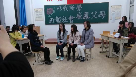 本次活动主要以团小组为单位分别进行节目展示,活动内容围绕“以我所学,感恩父母”“以我所学,回报社会”展开,活动形式包括小品、情景剧、诗歌朗诵、三句半、自制视频展示演说等。六个团小组依次登台围绕主题进行表演,并且整个过程都有视频录制。在节目衔接的过程中,主持人马静对每一个团小组的表演进行了评说总结,并带动全体同学进行“以我所学,感恩父母”“以我所学,回报社会”为主题的思考,在每一次节目结束时,同学们都为节目的创意与精彩报以热烈的掌声。在班会结束之际,辅导员祁老师进行了班会的总结,并给全体同学讲解了“孝”和“老”的关联意义,引起了同学们更深层次的思考。
