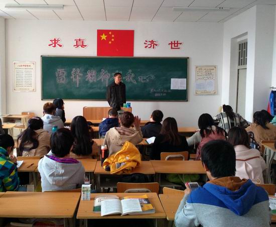 本次团日活动得到了同学们的热烈支持。李伟婕同学首先就雷锋同志的生平进行介绍,尤其是四个雷锋精神内涵:奉献精神,“钉子”精神,“螺丝钉”精神和艰苦奋斗精神,为我们展示了雷锋那种全心全意为人民服务,把有限的生命投入到无限的为人民服务中去的精神,那种干一行爱一行,立足岗位、艰苦奋斗的敬业精神,那种对同志、对群众像春天般温暖,舍己为人、助人为乐的精神。张慧娟同学则带来一首《学习雷锋好榜样》歌曲,曲子简洁明快、铿锵有力,以其特有的旋律和激情,感染和激励着一代又一代人。唱雷锋,学雷锋,做雷锋,神州大地上,高扬的雷锋精神始终熠熠生辉,已成为我们民族精神中不可缺少的一部分。李晓青同学认为做雷锋一定要从小事做起,不乱扔垃圾,帮朋友做力所能及的事,当每一件小事都办得非常完美时,雷锋精神已经牢牢在我们的心中扎根。活动现场还有答题互动节目,同学们都踊跃抢答,积极学习。
