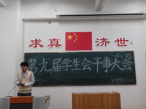 为促进学生会各成员之间的相互了解,提高学生会日后的工作效率,护理学院学生会于2014年12月21日晚7时在仁爱书院107教室召开第九届学生会干事见面会。护理学院学生会主席李佩伶,副主席李艳明、张雅怡,各部部长及全体干事参加了此次大会。