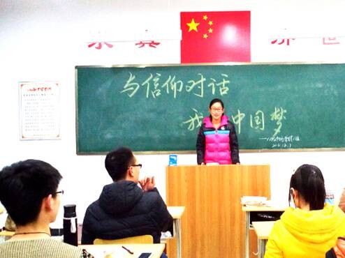 12月7日,12级市场营销1班第三团小组在行知楼113教室举行了以“与信仰对话,我的中国梦”为题目的团日活动,本次活动由第三小组组长韩雪凝主持策划。