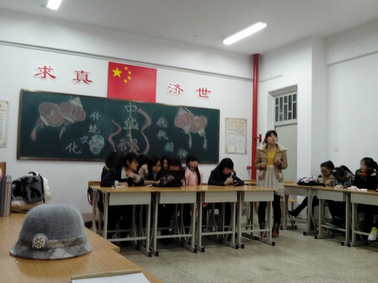 活动在张亚剑同学的诗朗诵以及杨洋同学的一首内蒙古民歌中拉开了序幕。随后,杨洋同学介绍了她们民族-“达斡尔族”的习俗以及一些具有特殊意义的活动,同学们都认真地听着,不时为这个民族的伟大而发出赞叹。活动第二项:抢答环节,活动中同学们被随机分为四组,由组织委员进行分数统计,得分最高的小组胜出。同学们积极参与,踊跃抢答,比赛场面相当激烈。活动第三项:欣赏并猜出戏曲的种类。平时都不听戏曲的同学们今天听的都很认真,而且现场还进行了戏曲pk。活动第四项:学习毛笔字和剪纸,本环节是由特邀嘉宾艺翔书画社郭鹏飞同学教大家写字,组织委员陈芳芳教大家剪纸。活动在同学热烈的掌声中圆满结束。