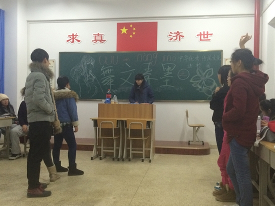 为了促进社会主义精神文明建设,加强优秀传统文化在青少年中的宣传普及。12月10日晚7时30分,2013级植物保护班在药学楼201教室举行了以“舞文弄墨”为主题的“中国优秀传统文化进校园” 团日活动。本次活动由团支书何乐毅凡主持,全班34名同学参加。