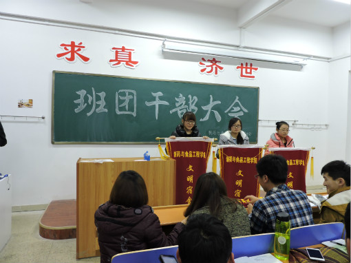 为积累工作经验,及时调整工作方向,2014年12月12日,制药与食品工程学院在和剂书院209教室举办班团干部大会。学生会主席魏贯宇、副主席侯婷婷、学生会各部部长及各班班团干部参加此次会议。会议由14级制药3班宁毓航主持。