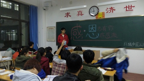 2014年11月27日,是11月的第四个星期四,亦是一年一度的感恩节。借此契机,我班于27日下午4点在医学楼314教室召开“因为有你,心存感激”主题班会。中医二班全体同学均积极参加。此次班会由周嘉宝、裴鎏华同学主持。