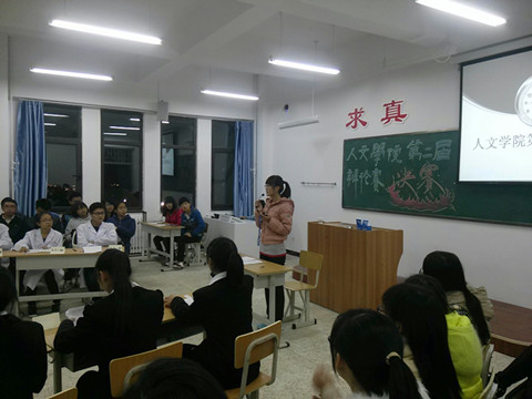 经过几天激烈的角逐,人文学院第二届辩论赛决赛终于在11月9日晚7时30分许于医管楼309教室拉开序幕。此次比赛辩论主题为“先成家还是先立业”,评委团由学生会成员郑元辉、武蓉、王文召、周列欢、申磊、胡晨琳以及14级班长彭李健、学习委员韩浩洁组成。人文学院全体同学均到场观看。
