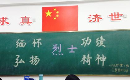 为了继承和发扬革命传统,弘扬军垦净胜,引导我班同学学习历史,铭记革命先烈光荣事迹,从而激发我班同学热爱祖国的伟大情感,2014年10月23日,13级护理2班在护理大楼407教室开展了“缅怀烈士功绩 弘扬烈士精神”主题团日活动。辅导员鹿云老师应邀出席,13级护理2班全体同学参加了本次活动。活动主持人由曹越同学担任。