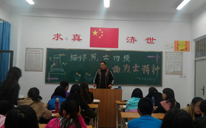 为响应国家关于设立烈士纪念日的决定,培养学生的爱国主义、集体主义精神,弘扬社会道德风尚,2014年10月23日晚8时,13级护理6班全体成员在新校区护理楼408教室开展了“缅怀烈士功绩,弘扬烈士精神”主题团日活动。本次活动由宣传委员张海涛主持,以学生演讲的形式进行。