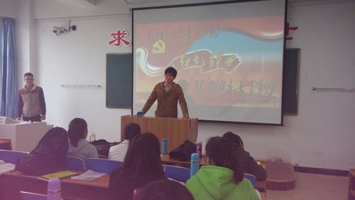 活动伊始,主持人范奕松宣读了团日活动主题及目的,并且简要地介绍了活动的游戏规则。接着,由许涛给同学们分别播放黄继光,狼牙山五壮士,董存瑞,邱少云等英雄事迹的短片。每播放完一个短片,就让同学们竞猜这个短片所讲述的烈士的名字,回答正确的同学将获得奖品。此环节过后,由主持人通过演示PPT总结烈士身上值得学习的优秀品质,并让同学们就何为烈士精神展开了激烈的讨论。一些同学抒发了自己将要继承革命遗志的想法。活动最后,在同学们的强烈要求下,将《地雷战传奇》完整地播放了一遍,这部黑白影片以抗战时期闻名中外的“地雷战”发生地——山东海阳为背景,真实再现了我党领导下的当地抗日军民,打日寇,除汉奸,反恶霸,最终解放海阳的光辉历程。