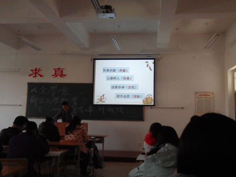会议伊始,张教授针对当前社会、高校、国民素质等,全面分析了中国传统文化的文化现状,并进行反思。接着,他强调当代大学生要学会积极探索,对同学们做出殷切期望。最后,他解读了推进大学文化建设的重要途经,指出我们要以传承创新为内容,立德树人为任务,用统筹协调的方式,达到提升自我品质的目标。