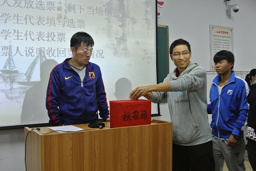 精彩的演讲结束后,监票人宣读投票方法并发放选票。在收回选票进行统计的同时,学习部部长翟晓亮对一年的工作进行了总结。他详细总结说明了学生会各部门在工作中的成绩与不足,鼓励各部成员继续努力工作,并预祝新一届学生会工作蒸蒸日上。