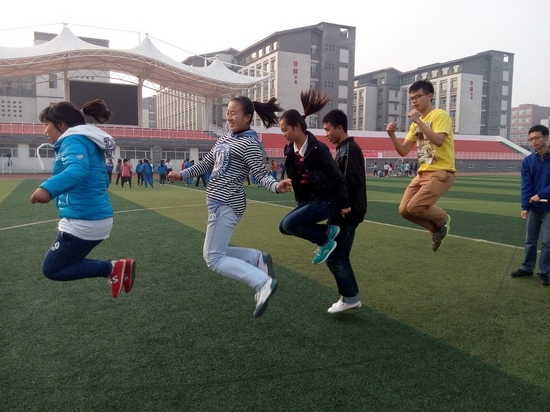 我们的青春在肆意张扬着个性,绿茵场上,阳光洒下的光辉把我们的生命照耀得无比生动。那一声声大绳落地的声音,那一步步轻跳的脚步,那一阵阵清扬的欢声笑语。我们是在最美好的年华遇到了最美丽的人儿,无比的开心能在这个活动中互相走进彼此的心里,侃侃而谈,这是多么难得的事。跳大绳大家姿态百出,有的逗人发笑,有的令人惊讶,有的令人惋惜……大家的情绪被跳绳者影响着,这就是所谓的感染力吧。比赛中我们互相团结,共进退,纵使输了,也要患难与共,一起接受惩罚。