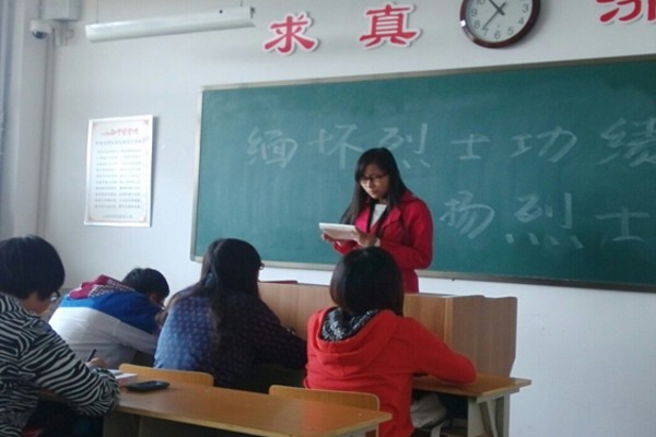 此次班会由班级第三团小组主持。活动伊始,李卫峰同学为大家宣读了人民英雄纪念碑碑文。然后全体同学演唱歌曲《精忠报国》,感受英烈精神。接下来李炜同学朗诵了关于宣扬革命烈士精神的诗歌,使同学们从中感受到英雄所表达的内心对于死的不畏惧,对于为国捐躯的慷慨之心。最后一项中,通过游戏的方式猜猜这是哪位英雄人物,同学们积极参加,并从中了解到了烈士的英勇事迹。