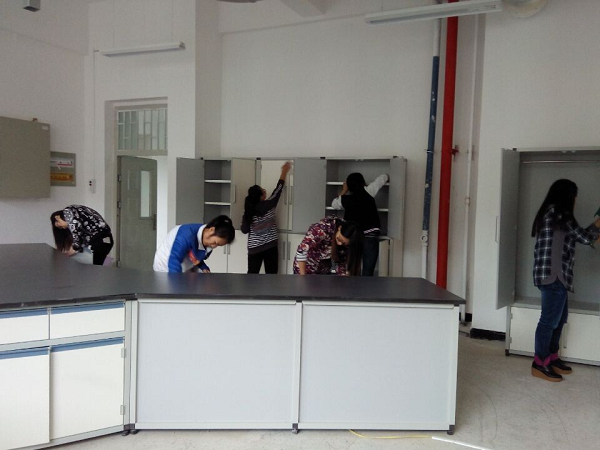 我们6人分为一组来打扫一间实验室,全新的实验室,全新的设备和器材,不把它打扫得干净整洁怎么能对得起学校对我们的付出?每一个柜子,每一张桌子,每一个角落都不能落下,大家相互合作,鼓足干劲,女生拿抹布,男生拿拖布,经过一个多小时,一层所有的实验室都变的干净整洁,尽管大家都很累,但感到尤为欣慰。
