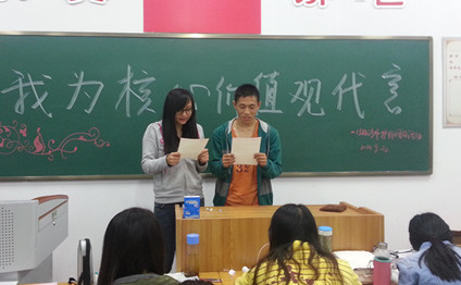 为响应校团委号召,提高同学们的思想觉悟,切实引导和帮助同学们自觉将社会主义核心价值观内化于心、外化于行,2014年9月22日晚7点30分,13级涉外护理班全体同学在新校区护理大楼203教室召开了“我为核心价值观代言”主题团日活动。活动由团支书邵帅主持。