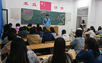 为了引导同学们树立正确的道德观,营造良好的学习氛围,2014年9月23日,14级护理2班全体同学在护理大楼304教室开展了“我为核心价值观代言”主题团日活动。本次活动由文艺委员马思媛主持,辅导员韩波出席。