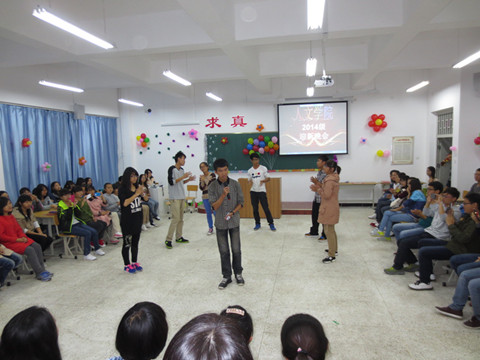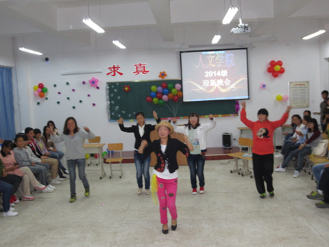 为了迎接14级新生,拉近彼此之间的距离,2014年9月28日晚7时,人文学院在医管楼309教室举办了新生晚会,与会人员有14级应用心理班辅导员梁飞老师及人文学院的全体同学。此次活动主持人为马叶丹和杜欣宏同学。
