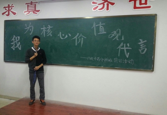 9月28日晚,2013级中药分析1班、2班在药学楼320教室举办了新学期的第一次团日活动,本次活动的主题为“我为核心价值观代言”,辅导员老师杨丽霞,刘必旺应邀参加了此次活动。