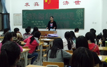 为响应团中央书记处书记周长奎的号召,帮助广大青年认识和践行社会主义核心价值观,2014年9月23日晚8点13级护理3班团支部在护理楼405教室组织召开了“我为核心价值观代言”主题团日活动,本次活动共48人参加,主持人由王江洋同学和巩存娟同学担任。