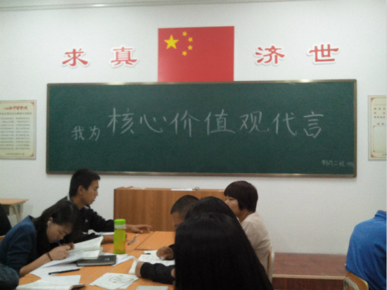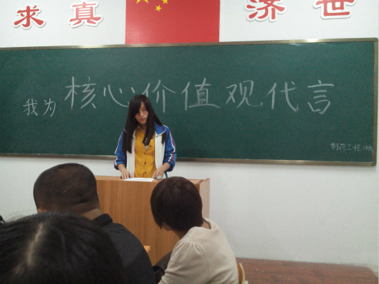 2014年9月25日晚7点30分。制药工程一班于药学楼216教室举行了以“ 我为核心价值观代言 ”为主题的团日活动。活动由团支书刘晓主持。
