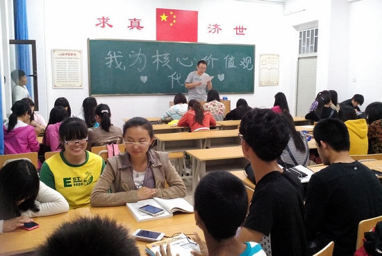 为了让同学们深刻领悟社会主义核心价值观的内涵,懂得价值观的重要性,懂得把理论贯彻到平时生活的一点一滴中。9月24日2013级药学1班于药学楼208教室开展了“社会主义核心价值观引领我成长”的主题班会,会议由团支书郭杰主持。