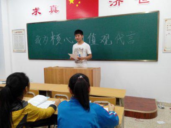 接下来,主持人邀请了几名同学就各自所理解的价值观进行发言,男同学的观点是树立“玩人丧德,玩物丧志,自制以生,节制以存”的的价值观;女同学则要学做一个“坚强、淡然、温婉、气质、若水、静好”的明媚女子。人与人各有差异,每个人的价值观也许各不相同,但我们每个大学生都要明确自己存在的价值。