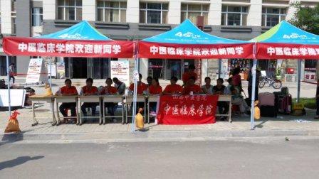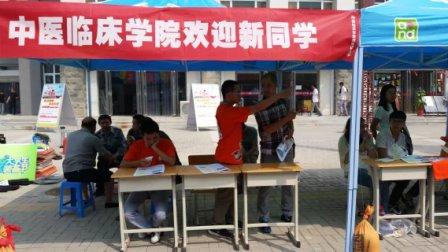 为迎接新生到校,校方在校园各处均设置了宣传画板和标语,还有供乘凉的休息区。中医临床学院积极配合校方工作,均指派志愿者在服务区为新生及新生家长提供服务。
