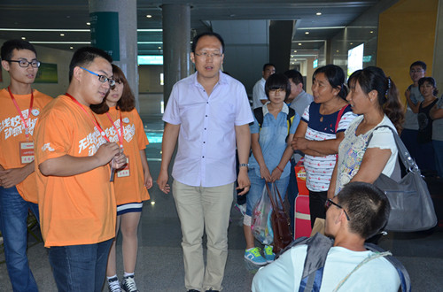 在张耀老师讲解了迎新的具体流程,并对同学们明确分工后,迎新活动正式拉开序幕。每趟列车进站后,志愿者们都会提前等在出站口,举好接站牌耐心等待。当接到新生时,志愿者们会积极接过他们的行李,主动介绍学校的基本情况,耐心回答新生和家长的问题。这时的新生也忘记了旅途的疲惫,激动的向志愿者询问学校的各种信息。待新生及家长们达到指定人数,由志愿者带往乘车地点统一乘坐校车。到达学校后,再由各学院的工作人员引领新生办理入学手续。虽然过程比较劳累,但看着新生一批批的安全抵达,这不仅是志愿者工作的动力源泉,更是对他们辛勤付出的肯定。