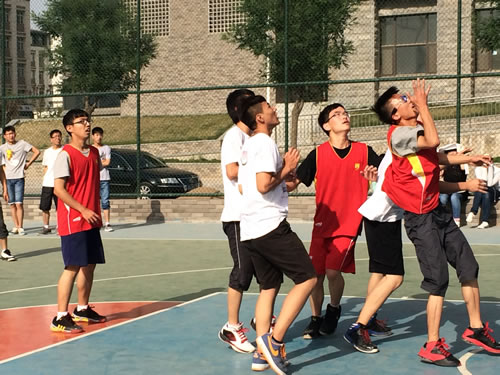 2014年5月20日星期二下午,在篮球场我班与人文学院应用心理队进行了一场三人制篮球对抗赛。我班参赛队员有王林林、裴鎏华、梁达、杨文娜、郭晶蕾、曹雪,其余同学自发组建班级拉拉队。