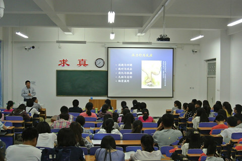 讲座中,徐勇老师和同学们分享了压力的产生与解压的过程。首先,他以“医闹”引出了医务人员的压力并用诙谐幽默的例子道出了自然界的压力,像是四川的大熊猫得了抑郁症,英国的一只鹦鹉因抑郁拔光身上的羽毛…甚至是结婚、放假等事件都能引起人类的压力。接着,他为我们分析了产生压力的因素并着重讲解了应对压力的策略,从一名精神科医师的角度讲述了健康的减压方式:优化事件管理、塑造健康人格、形成正确认知、重视应对方式、利用社会支持、多种方式发泄、减压拓展训练、宗教和文化影响。最后,徐勇老师与学生们进行互动,并留下联系方式方便同学们与他交流。徐勇老师的精彩讲座赢得现场阵阵掌声,讲座过程中同学们认真聆听,现场气氛轻松活跃。